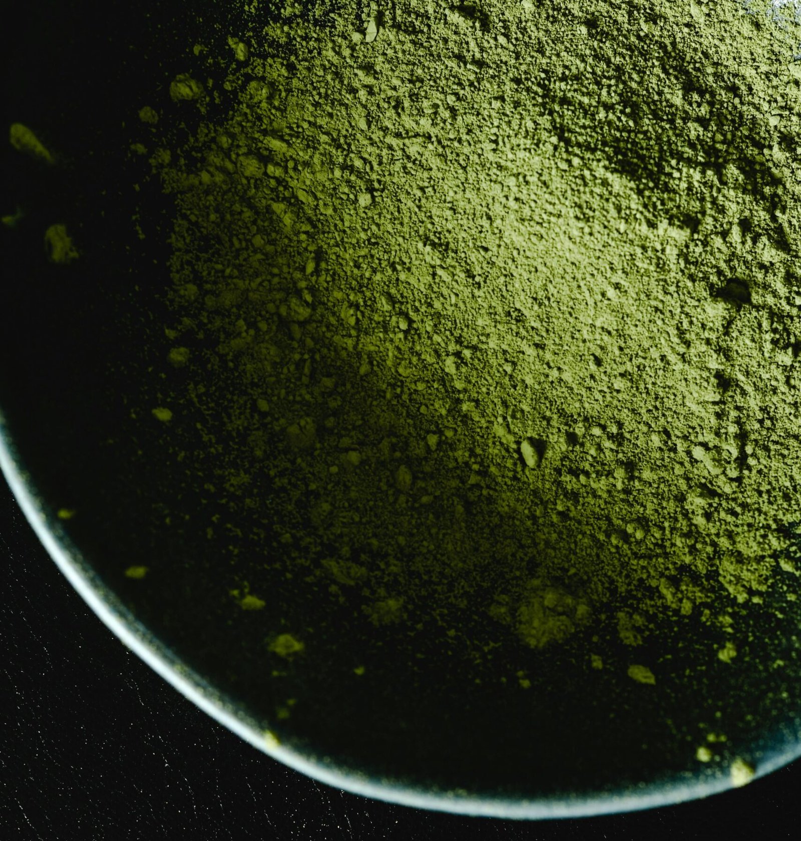 Intriguing close-up of matcha powder in a bowl against a dark background, highlighting texture.Tulsi (Holy Basil) – Powder (150g)
